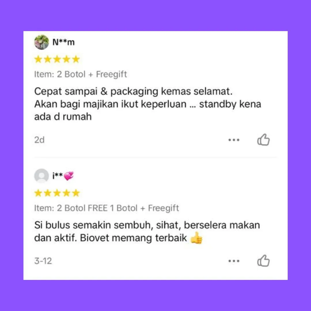 Biovet Omega Plus telah digunakan oleh ribuan pemilik kucing dan mendapat kepercayaan ramai di seluruh Malaysia.