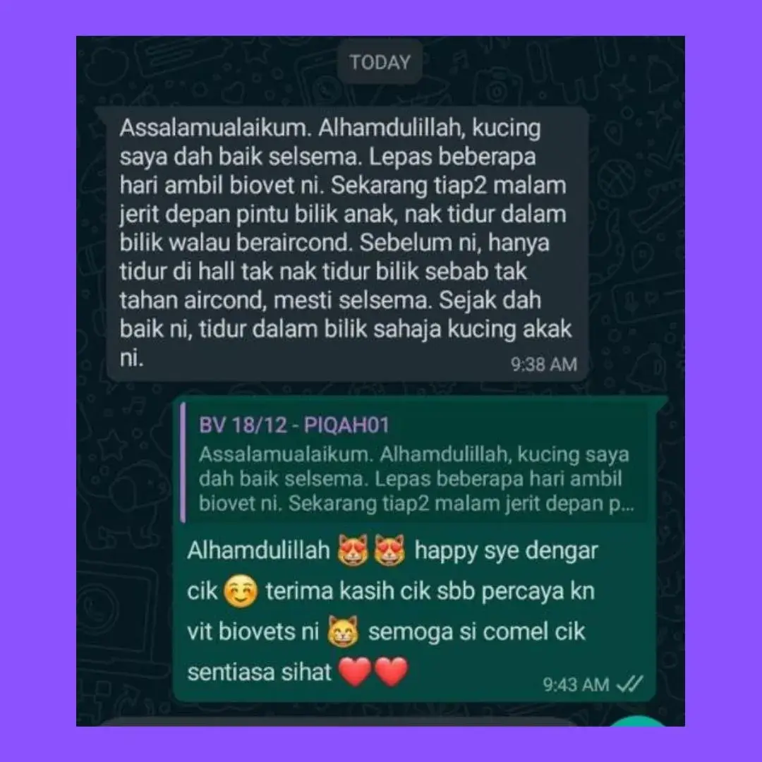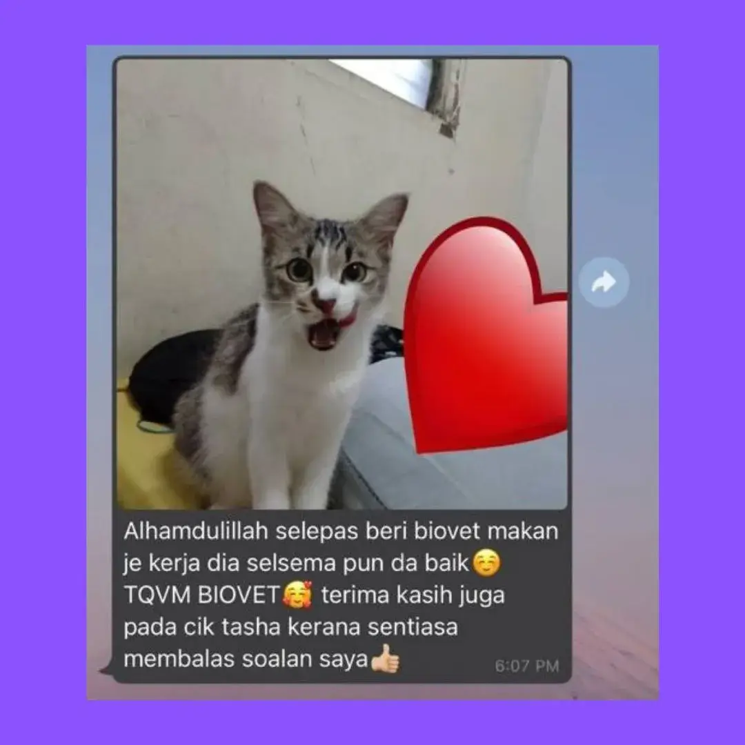“Kini ramai pemilik kucing pilih Biovet untuk bantu kucing lebih sihat & aktif.” ❤️